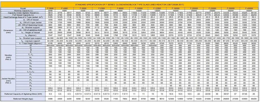 Design and manufacture standard of F type glass lined reactor is according to GB/T150.1~4-2011, TSG21-2016/XG1-2020, GB/T25025-2010, GB/T25026-2017.