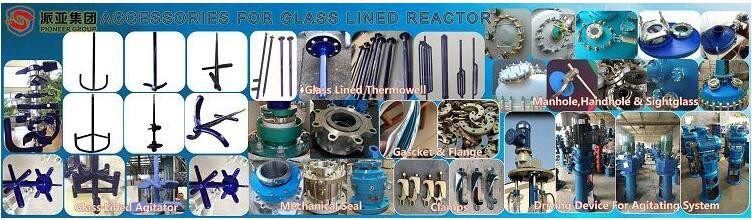 CE type glass lined reactor is full-closed structure vertical type agitating pressure vessel, also named "Close type MSGLR" or "Monoblock type MSGLR". It is design and manufacture according to the DIN-EN standard, and its structure mainly a full closed glass lined vessel body with U type jacket or external limpet coil jacket, a top insert glass lined agitator, motor-gear diving device, shaft seal, flush valve, temperature and pressure measurement device and etc. Heating and/or cooling method is with the jacket through by medium of steam, water or thermal oil.