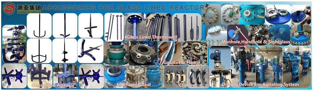 F type glass lined reactor has a opening & a cover on the vessel top head for install agitator, the diameter of opening is not more than half of vessel body diameter. It is design and manufacture according to the Chinese national standard and its structure mainly includes a close-welded glass lined vessel body, a top insert glass lined agitator, motor-gear driving device, shaft seal, U type or limpet coil type heating/cooling jacket, bottom flush valve, temperature and pressure measurement device and etc. Heating and/or cooling method is with a u type jacket or outer-side semi-coil/limpet type jacket through by medium of steam, water or thermal oil.