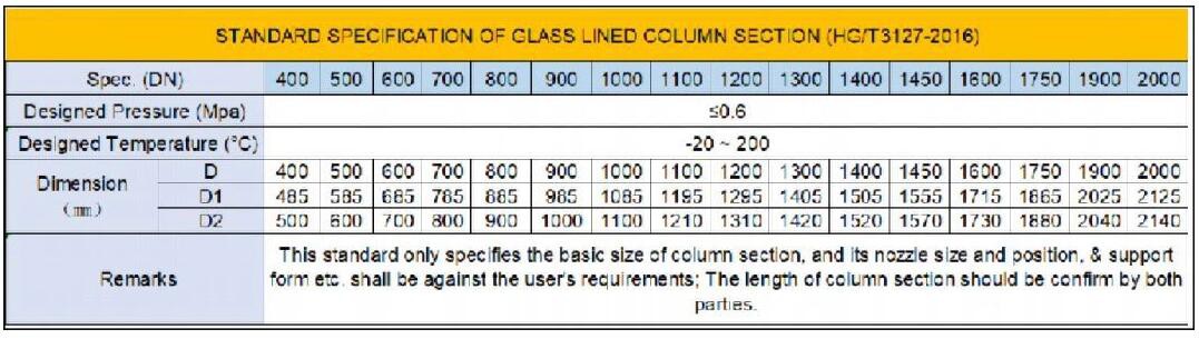 Glass lined column is usually assembled by several glass lined section and use for gas scrubber, tubular reactor, glass lined distillation column, glass lined absorption column, glass lined extraction column and etc. The nozzle size and position with support form, flange standard, length of column section, whether jacketed shall be design, manufacture and supply according to the user’s requirement.