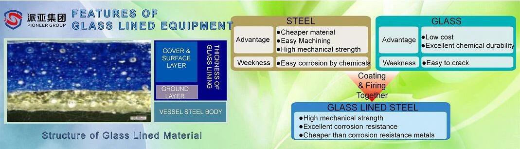 Corrosion Resistance -The inner lined glass is extremely resistant to corrosion by acids and alkalies (except for hydrofluoric acid and hot concentrated phosphoric acid)
